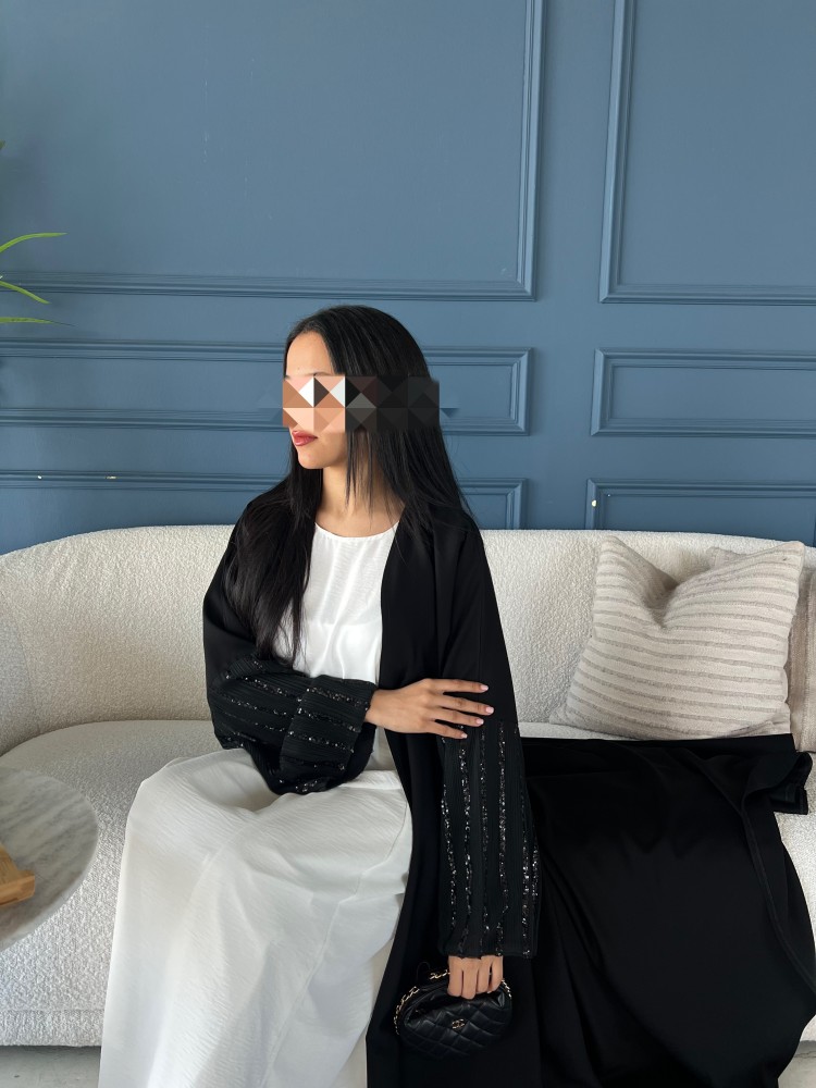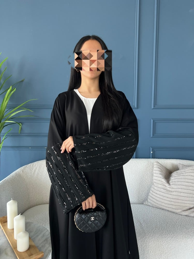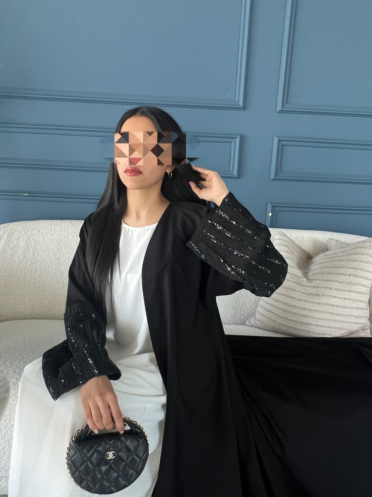 مواصفات المنتج :المنتج :cod/55التصنيف: العبايات السوداءاللون: اسودنوع القماش :كريب صالونه مع تدخيله تل ترتر مقلم لمعهالقصة : نص كلوش