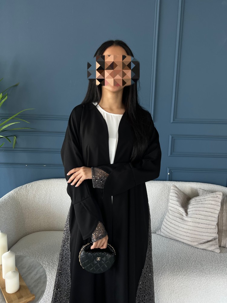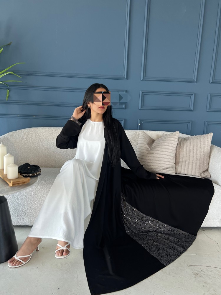 مواصفات المنتج :المنتج :cod/52التصنيف: العبايات السوداءاللون: اسودنوع القماش : كريب صالونه مع تدخيله دانتيل ترتر امعةالقصة : نص كلوش